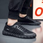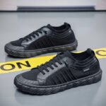 These stylish black sport casual shoes combine minimalist design with practical functionality, perfect for everyday wear and light activity. The upper features high-quality breathable knit fabric, ensuring a lightweight and comfortable fit while keeping your feet cool and dry. Enhanced with a reinforced protective toe and textured side panel design, these shoes offer both style and functionality. The durable rubber sole provides excellent anti-slip performance and superior traction, delivering a steady stride. With a flexible and lightweight structure, these sneakers guarantee all-day comfort.