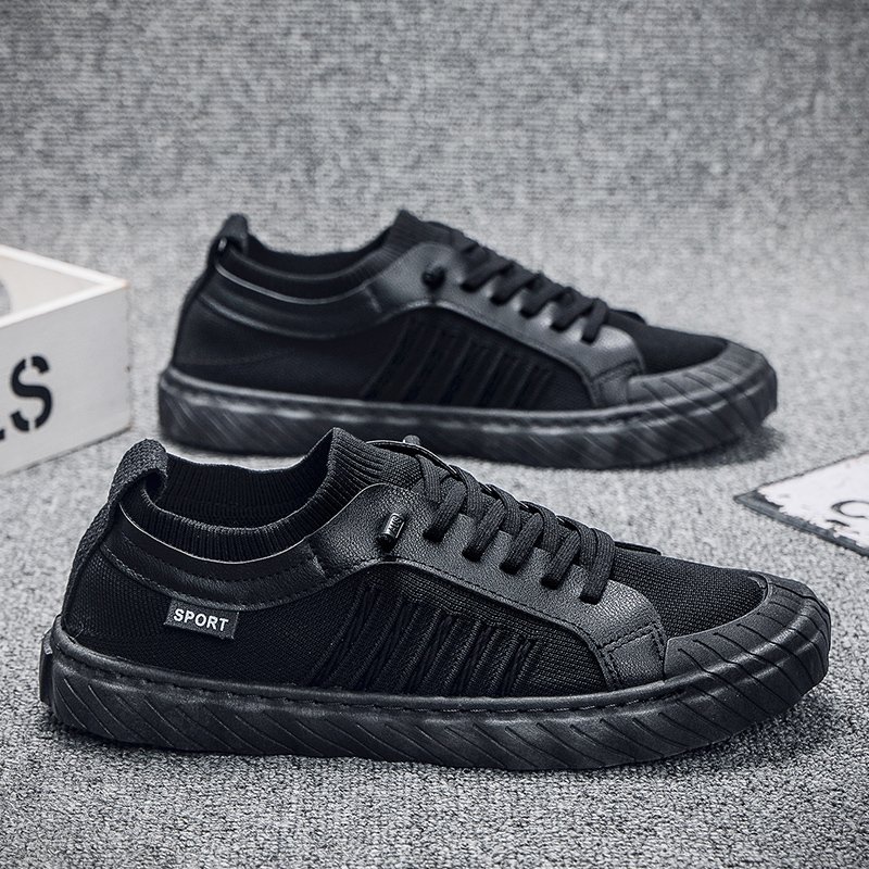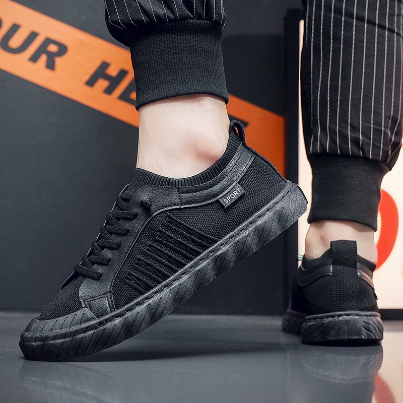 These stylish black sport casual shoes combine minimalist design with practical functionality, perfect for everyday wear and light activity. The upper features high-quality breathable knit fabric, ensuring a lightweight and comfortable fit while keeping your feet cool and dry. Enhanced with a reinforced protective toe and textured side panel design, these shoes offer both style and functionality. The durable rubber sole provides excellent anti-slip performance and superior traction, delivering a steady stride. With a flexible and lightweight structure, these sneakers guarantee all-day comfort.