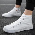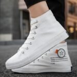 This pair of classic high-top white canvas shoes features a minimalist design, perfectly complementing various styles, making it an essential item for your daily wardrobe. The upper is made of premium canvas material, lightweight and breathable, ensuring long-lasting comfort. The reinforced sole design is anti-slip and durable, suitable for multiple occasions, including daily commutes, casual gatherings, or outdoor activities. Whether paired with jeans, shorts, or skirts, these white high-top shoes effortlessly enhance your overall look. Simple yet stylish, combining fashion with practicality, they are an ideal choice for everyone’s shoe collection!