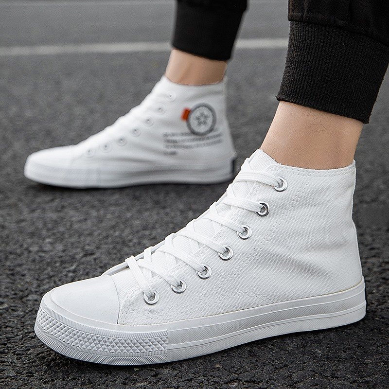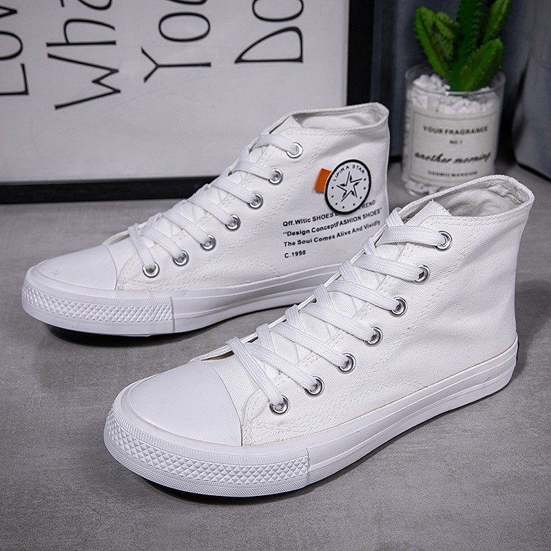 This pair of classic high-top white canvas shoes features a minimalist design, perfectly complementing various styles, making it an essential item for your daily wardrobe. The upper is made of premium canvas material, lightweight and breathable, ensuring long-lasting comfort. The reinforced sole design is anti-slip and durable, suitable for multiple occasions, including daily commutes, casual gatherings, or outdoor activities. Whether paired with jeans, shorts, or skirts, these white high-top shoes effortlessly enhance your overall look. Simple yet stylish, combining fashion with practicality, they are an ideal choice for everyone’s shoe collection!