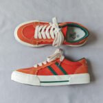 Order these orange and green canvas sneakers now and step out in retro style with unmatched comfort!