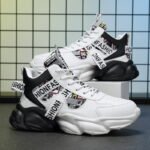 Create your own trend-setting style with these high-top fashion sneakers that combine modern street style with comfort and practicality. The upper features premium leather accented with unique printed elements, delivering a one-of-a-kind visual impact. The thickened sole is ergonomically designed to provide excellent support and shock absorption, making it perfect for daily wear and extended walks. The striking black and white color contrast, along with bold letter detailing, adds a fashionable edge, making it a must-have for trend enthusiasts. Whether for casual streetwear or everyday outings, these shoes will effortlessly make you the center of attention!