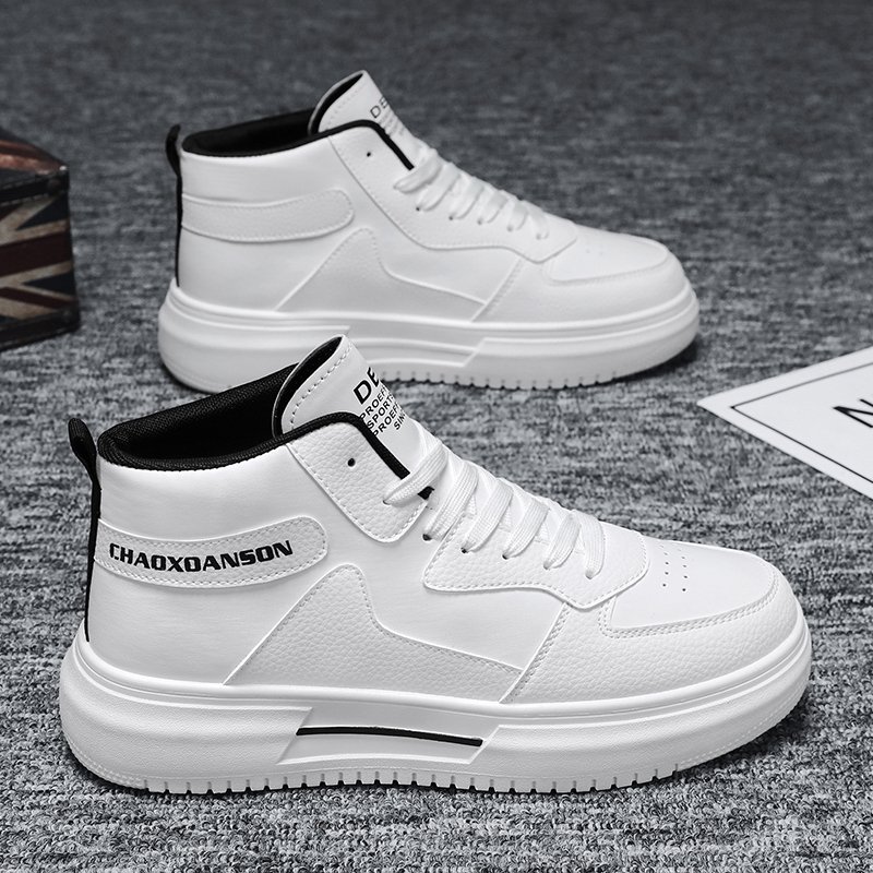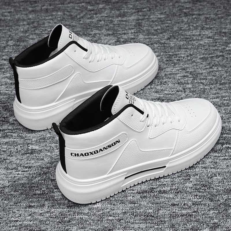 These pure white and white high-top sneakers combine fashion and functionality, making them the perfect fit for everyday wear and trendy street style. The upper is crafted from high-quality synthetic leather, presenting a sleek and premium texture. Paired with a durable thick sole, these shoes provide excellent grip and support for all-day comfort. The classic lace-up design ensures a secure fit, while the unique brand print on the side adds a touch of style. Whether for casual outings, campus commutes, or trendy streetwear looks, these high-top sneakers are your ideal choice!