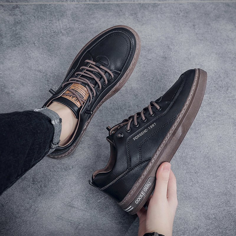 These black genuine leather casual shoes seamlessly blend classic design with modern craftsmanship, exuding an elegant and sophisticated urban style. The upper is made from high-quality full-grain leather, offering a soft touch, fine texture, and long-lasting durability. The detailed stitching adds a premium feel, while the vintage brown rubber sole provides excellent grip, wear resistance, and lightweight stability. The soft, breathable lining and cushioned insole ensure all-day comfort, even during extended wear.