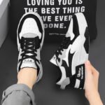 This stylish casual sports shoe features a unique black and white color-block design, combining fashion with functionality. Made from premium materials, the upper is wear-resistant and breathable, while the thickened sole provides stable support for all-day comfort. Modern details, such as the 3D decorations and eye-catching letter patterns, enhance the contemporary street style, ensuring you stand out from the crowd. Whether for daily casual wear or trendy urban outfits, this sneaker is the perfect choice, effortlessly meeting various occasions and showcasing confident, stylish vibes.