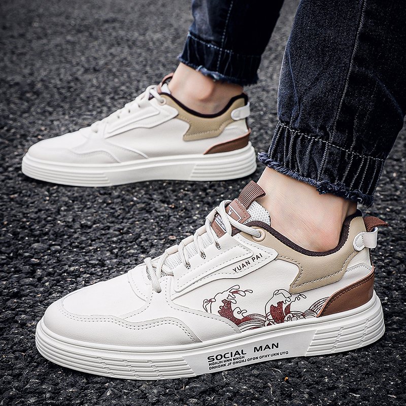 These sneakers perfectly combine style and comfort, designed for individuals who pursue both personality and trends. The upper is made of premium synthetic material, lightweight and breathable, paired with a classic white design for a clean and elegant look. The unique ink-inspired pattern on the side blends traditional and modern aesthetics, showcasing artistic flair and refined taste.