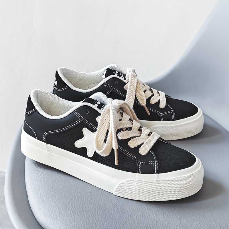 Classic Low-Top Canvas Shoes – Black and White Star Design