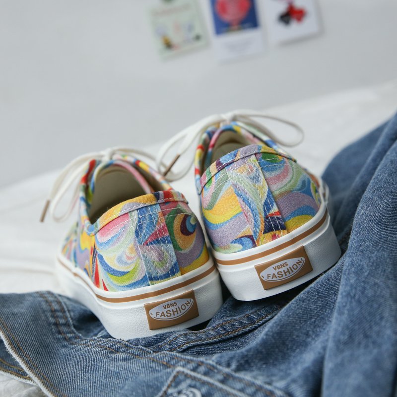 Rainbow graffiti couple plate shoes tide shoes street low-top cloth shoes-vt68