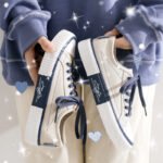 - Two-Tone Design, Unique Style: The classic beige canvas upper paired with a beige toe cap and blue thick sole creates a bold, fashionable look for trendsetters.